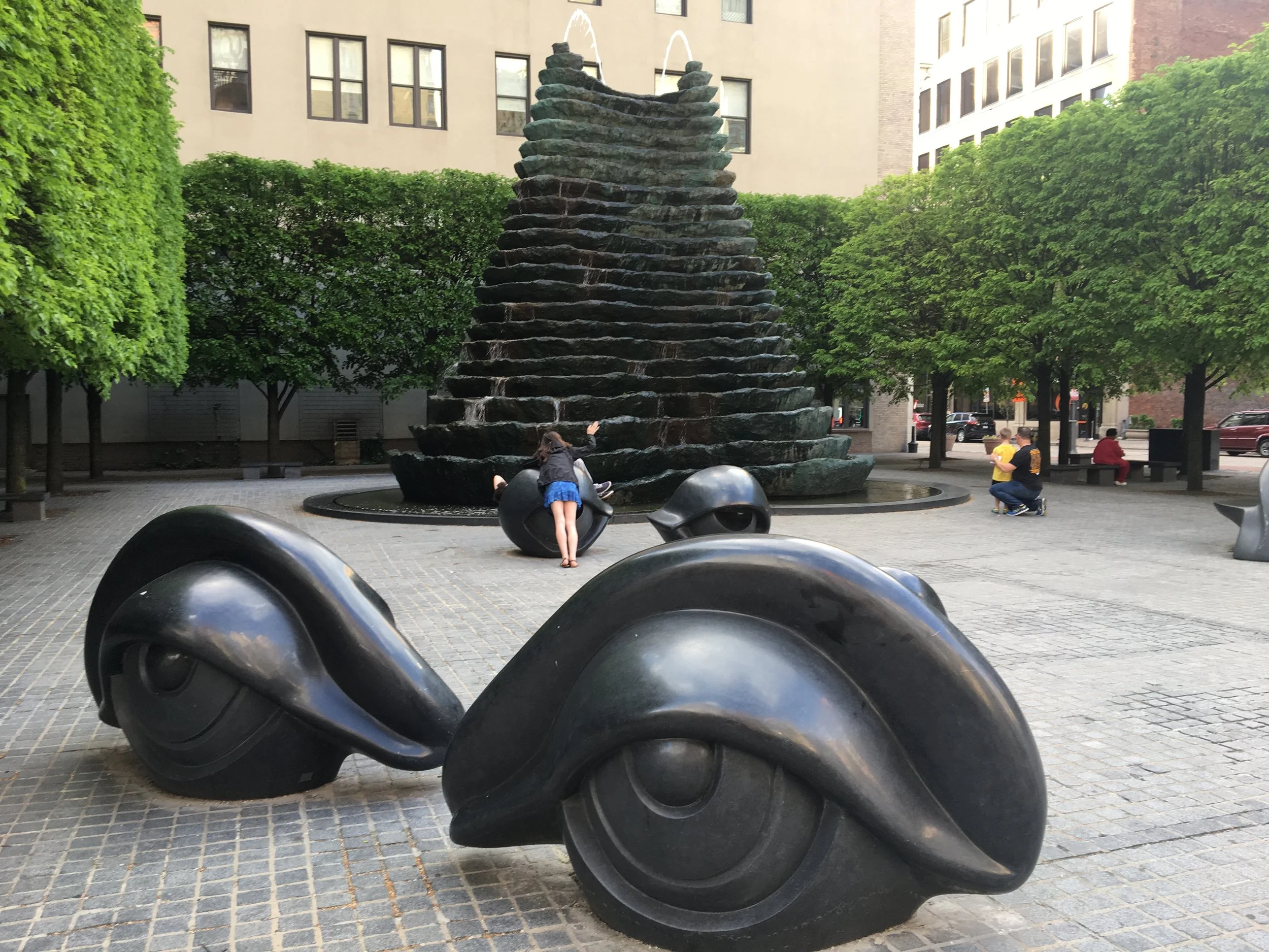 The Pittsburgh Cultural Trust’s Agnes R. Katz Plaza is arguably one of the most recognizable spaces in the city. Drawing inspiration from Pittsburgh’s rising topography, the late American artist and sculptor Louise Bourgeois created the 25-foot bronze fountain centerpiece of this 23,000 square foot public plaza. The sculpture is notable as the largest public art commission by Bourgeois. Granite “Eyeball” benches by Bourgeois add seating and further intrigue to this unique plaza. Pleached Little-leaf Linden trees line three sides of the plaza and give protection from the outer city and provide shade and intimacy to the space. Black granite cobbles create a textured plaza floor and granite benches are woven in between the Linden allees.. Completed in 1999.