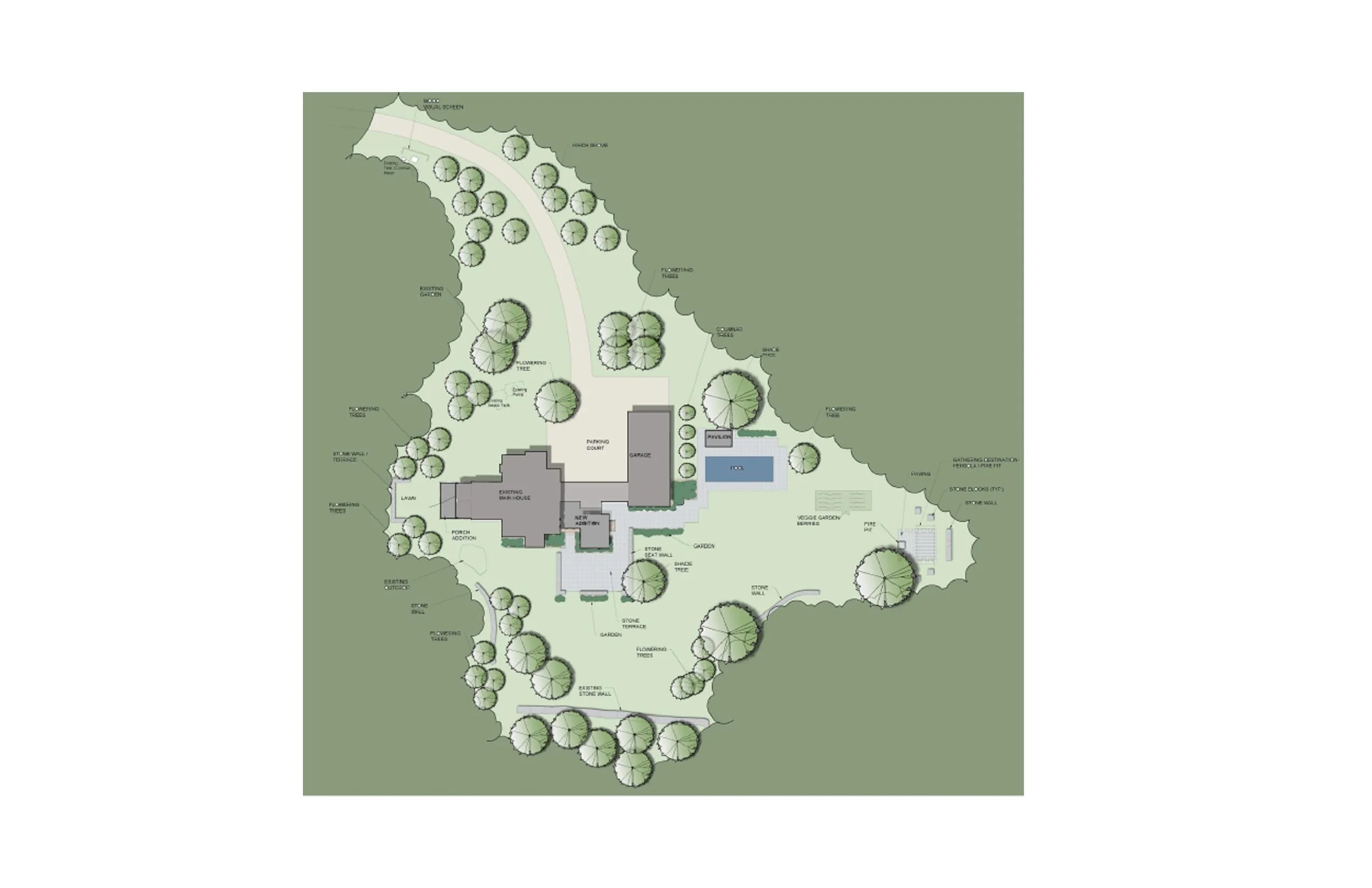 This project began as a Master Plan for a private residence with sweeping views of the Berkshire mountains in Williamstown, Ma. The Master Plan included new terraces, swimming pool and cabana, a screened porch and destination points around the property to take advantage of stunning views of Mt Greylock. Phase I was the design and construction of the screened porch with a terrace framed by a seat wall perched at the edge of the woods with adjacent hot tub discretely placed at the edge of the wall and forest. The porch closely relates to the existing architecture with large windows and weather screens, pao lope flooring and fir beadboard ceiling.